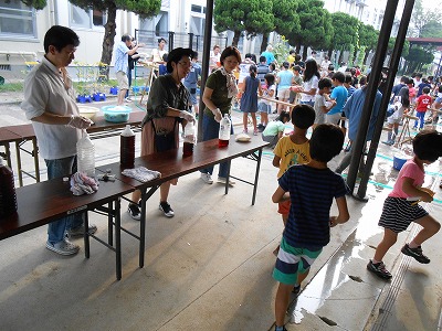 朝食は流しそうめん。つゆをいただいてから,流れてくるそうめんを箸で上手にすくいます。初めは難しそうでしたが,だんだん慣れてきました。のどごしのよいそうめんは,寝不足の朝でもおいしく食べやすかったようです。「もう、おなかいっぱい!」とみんな満足そうでした。