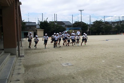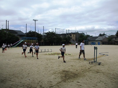 アップの後,1200メートルを走りました。今日は,自分の足音を意識して走ります。ベタベタという音にならないよう,気を付けて走りました。