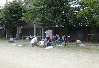 9月3日(日)の午前中,運動場では,施設利用協議会の皆様が草引きや溝掃除をしてくださいました。