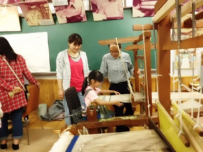 低学年の子ども達も,教えていただきながら織っていました。ちょっと織機がおおきいのでやりにくそうでしたが,それでも一生懸命手を動かしていました。