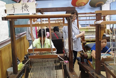 お母さんも,体験されました。真剣な表情で織っておられました。
