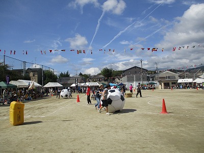 「玉入れ・大玉ころがしなど,町内対抗の競技は大盛り上がり!