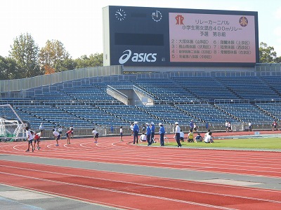 11月3日(祝),西京極陸上競技場で行われた,第29回市民スポーツフェスティバル「リレーカーニバル」に6年生4人が参加しました。