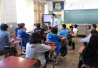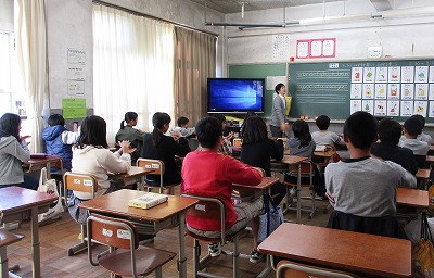 10月25日にも出前授業で来てくださっていた先生方なので,すぐに打ち解けて進むかなあと思っていたのですが,場所が違うせいか最初はやや緊張した様子でした。それでも,先生方のリードで次第に緊張もほぐれ,楽しく授業を受けることができました。