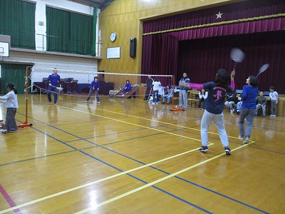 PTA会長,学校長挨拶の後,運営説明と準備体操をして,いよいよ試合がスタートしました。どの学年も和気あいあい,バドミントンを楽しんでいました。好プレー,珍プレーのたびに,歓声と拍手で盛り上がり,さわやかな汗を流しました。