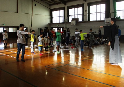 次に,扇の扱い方について教えていただきました。日常使うものより大きな扇なので扱いにくそうでしたが,広げて構えるととてもきれいでした。