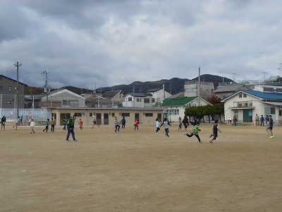 6年生が中心となって,みんなが楽しめるような遊びをします。運動場では「かわりおに」,体育館では「こおりおに」,教室では,宝さがしやトランプ,昨年作成した「人権かるた」を楽しんでいました。