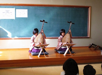 本校の校区に,筑前琵琶の師範の方がおられます。毎年,先生にお願いをして,子ども達に琵琶体験をさせていただいています。