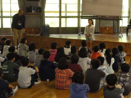 無事到着しました。10時20分にゅうしょ式です。ホールで元気な声で校歌を歌い