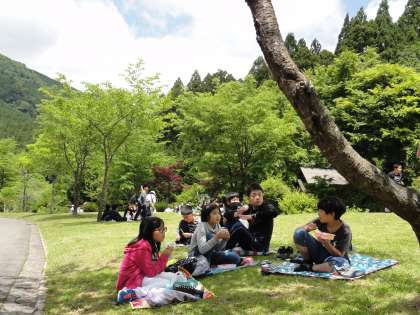 いい天気です。シートをお尻に敷いて坂滑りとても楽しんでいます。