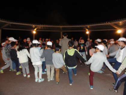 キャンプファイヤーは柏野小と合同です。とても楽しいものとなり,すごく盛り上がりました。これからも,仲良くできるといいですね。