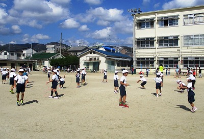 毎月「7」のつく日(休日等の場合はその前後の日)の中間休みに5分間,みんなで運動場に出て縄跳びをします。カードに記録しながら,回数や技に挑戦していきます。1回目の9日(火)は,とっても気持ちのよい青空の下で跳ぶことができました。次は,10月17日(水)の中間休みです。