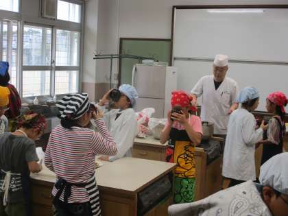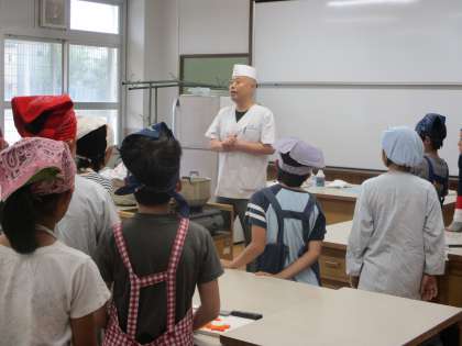 5年い組の総合的な学習の時間に「おかもと紅梅庵」の方にお越しいただいて,京料理の基本である出汁について学びました。昆布で出汁をひいた後,さらに鰹節を入れて出汁をひきます。