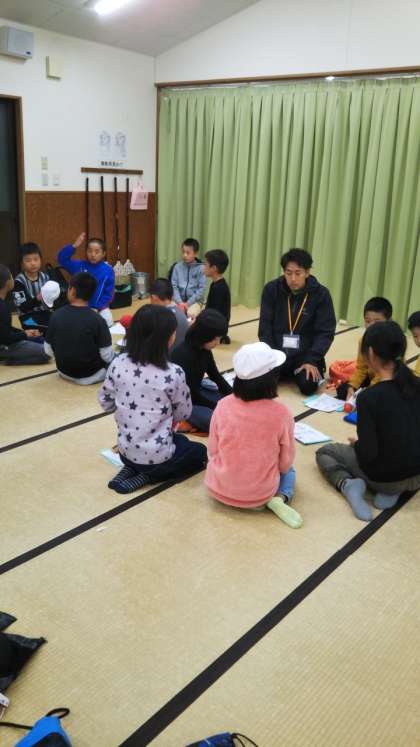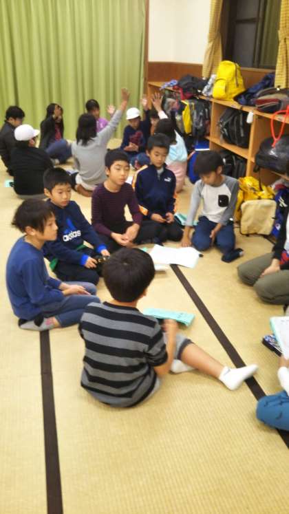 キャンプファイヤーも終わり,反省会です。今日の振り返りをしっかりとできました。明日も元気に活動ができるといいですね。