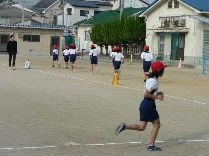 今日は,2・4・6年生のチャレンジマラソンです。先日と同様,走るグループと記録するグループに分かれて行いました。「今,〇周。」「頑張って!」「同じペースで・・・」などの声援の中,最後まで走りきりました。