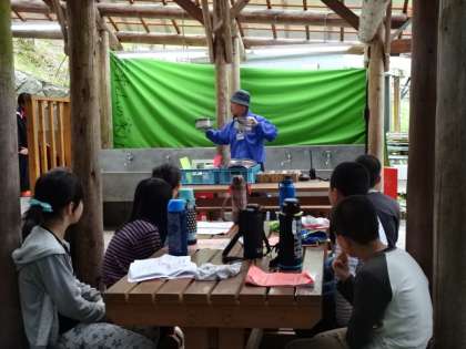 最初に,山の家の先生から説明を聞きます。大変素晴らしい「聞く態度」を褒めていただきました。