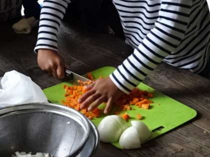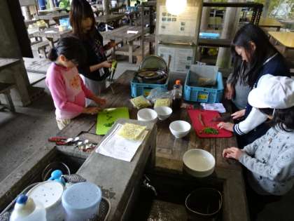 メニューを見ると…多少不安がよぎりますが,子どもたちは前日の「カレー」での経験を生かして,どんどん作業を進めます。