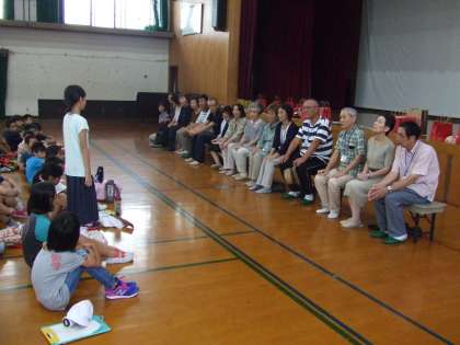 当日は,地域のおじいさんやおばあさんに,昔の翔鸞小学校の様子や遊び,地域の様子などを聞かせていただきました。喜びの涙を流してくださる方もいらっしゃり,おじいさんおばあさんと触れ合うことのできる有意義な時間となりました。