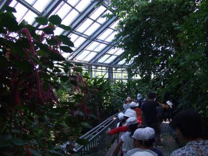 たくさん歩いた後は,芝生広場でお弁当を食べました。食後は,グループのみんなで遊んだり,温室の見学をしたり,とても楽しい時間を過ごしました。