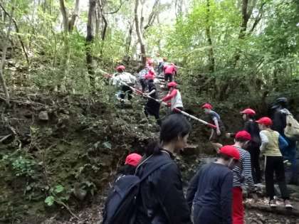「この道を夜通るの?」「こわそう…」「無理かも」なんて声も聞こえてきます。本番は真っ暗の中を懐中電灯の明かりと仲間を頼りに進みます。
