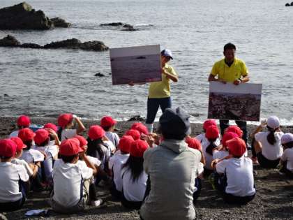 マリンランドから来ていただいた先生に,ヒトデの生態について実験を交えてお話を聞きました。ほとんどの子が初めてヒトデに触れたようです。ヤドカリやイソギンチャク,カニなどの磯の生き物をたくさん見つけることができました。