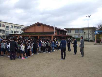 1月15日,避難訓練を行いました。地震が発生し,その影響で火災が起きたという想定で全員が運動場に避難をしました。