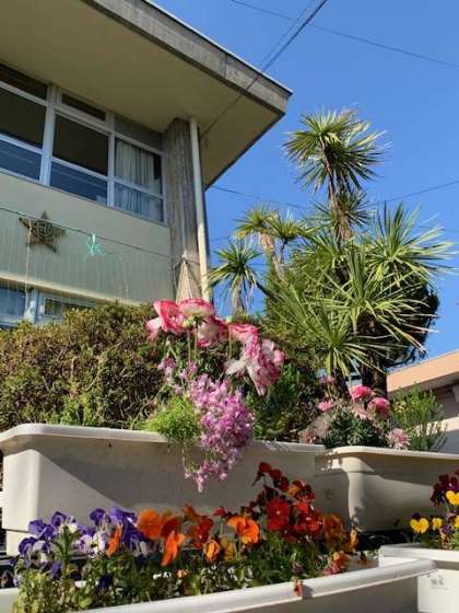 きょうは気もちのいい天気でした。ねこになったつもりでひくいいちから空を見上げると,どこかみなみのくにみたいなふうけいが見えました。