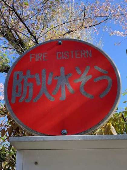 クイズです。ぼう火水そうのひょうしきです。ぼう火水そうというのは,火じのときに火をけすためにつかう水をためてある大きな入れもののことです。みなさんがまい日とおるばしょのじめんの下にうめてあります。さて,どこにあるでしょうか。