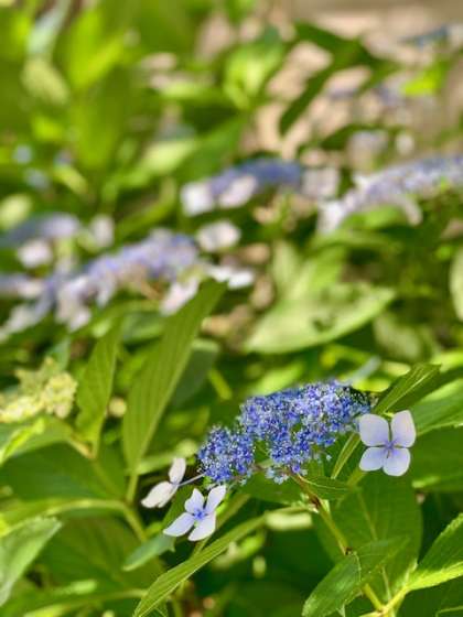 校しゃのきたがわに「あじさい」があります。いまがちょうど見ごろ。きれいな花をさかせています。