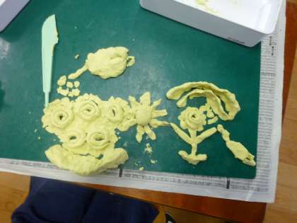 新聞紙のつぎは,ねんどとも仲良くなることができました。