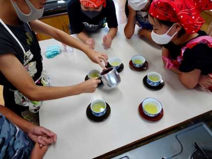 初めての調理実習では,協力して「お茶」をいれました。こさが均一なるためにはどうすればよいかを考えながら,おいしいお茶をいれることができました。少し大人の味だったようですが,その奥深さもみんなで味わっていました。学習を生かし,お家でもぜひやってみてください。