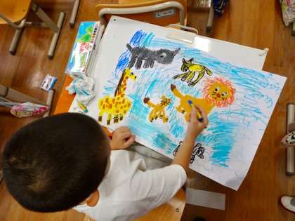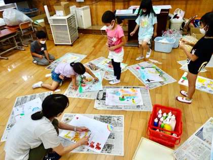 画用紙の中は,自分だけの自由な世界。自分が描きたいことを描きたい方法で,色や形を大事にしながら描きます。