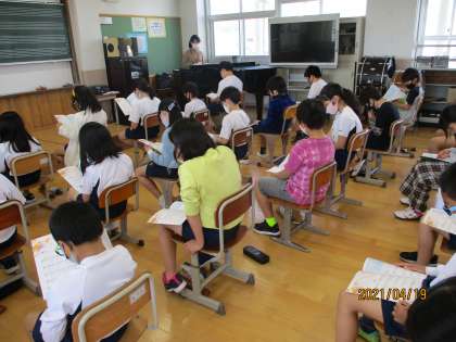 授業では,音楽科の学習で「Believe」という曲を聴きました。心が温まる素敵な歌詞とメロディーで,みんな,この曲が大好きになりそうです。