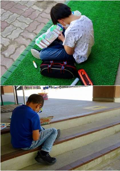 そして,5年生は図画工作で,自分のお気に入りの場所から見える風景を描き,2年生が算数で足し算の学習をしています。