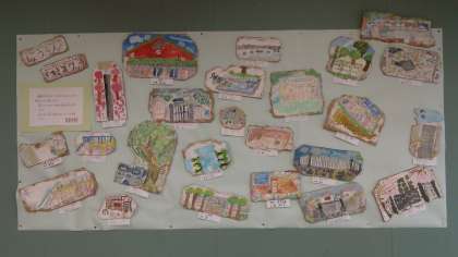 完成した作品をつなげると,学校を散歩している気分になりました。