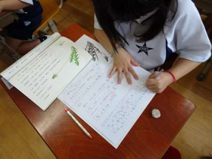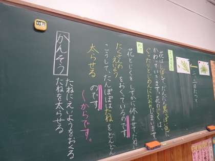 国語科「たんぽぽのちえ」で,たんぽぽがどんな知恵を働かせているか,文章から読取りをしています。