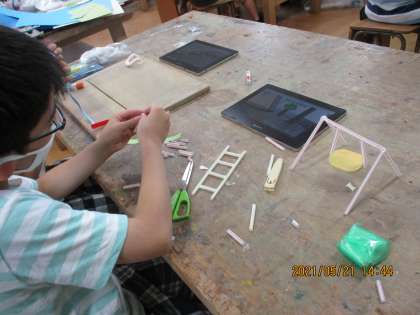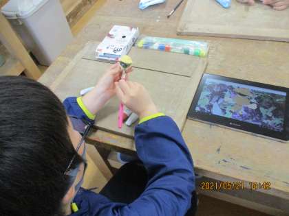 図画工作科では,「あんなところがこんなところに見えてきた」の学習をしています。今日は,先週作成したイメージスケッチをもとにして作品づくりをすすめました。自分のイメージに合う材料や用具を選んで,楽しく活動することができました。来週はいよいよ完成予定です。お楽しみに。