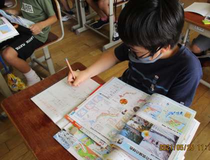 子どもたちは,教科書や資料集を使って調べ学習をすすめ,季節風が影響を与えていることに気付くことができました。