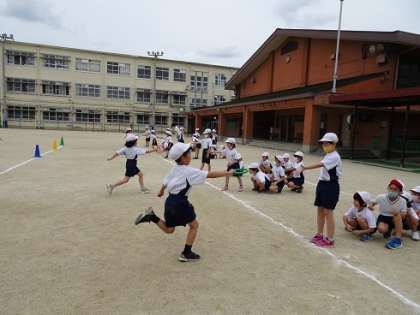 体育の学習でリレー遊びをしました。