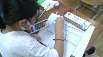 図画工作科の学習で「まぼろしの花」を絵に表す活動をしています。