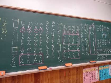 雨についての詩を,リズムよく読んだり,最後に自分で文章を考えて付け足したりしました。