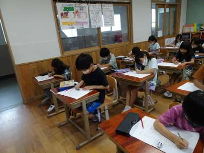 子どもたちは,「雨ってどんなところに降ってるかな〜。」「どんな音がするかな〜。」と思い出しながら,文づくりをしていました。