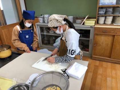 今日は,実際にご飯を炊いたり,だしを取ってみそ汁を作ったりしました。調理実習は2回目なので,前回より手際よく準備をしたり,材料を切ったりできていました。家庭科室中に,お米とだしの良い香りが漂っていました。