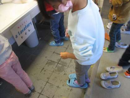 1年の道徳の教材に,「そろっているけど」という読み物があります。そのときの学習で,みんなが使うものは,次の人のためにも自分がきちんと片づけようと話をしました。最近,トイレのスリッパもぐちゃぐちゃになってしまうときが多くあったのですが,学習後の子ども達は,「きちんと並べよう。」と言って,そろえることをもう一度意識しています。