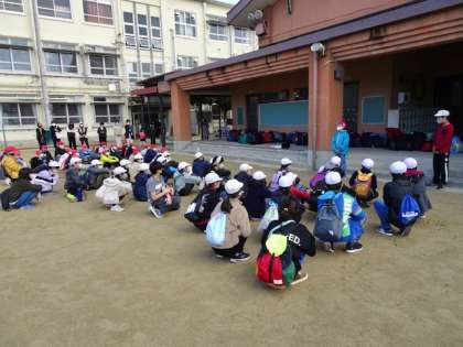 朝方降っていた雨が上がり青空が広がる中,5・6年生が,山の家に向け出発しました。