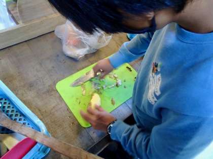 野外炊事が始まりました。
