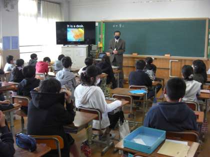 衣笠中学校の英語科の先生をお迎えし,出前授業が行われました。中学校の先輩方が英語で作った中学校生活の紹介動画を見て,分かったことや楽しみなことを話し合いました。よく知っている翔鸞小学校の卒業生も登場していました。春から始まる中学校生活が楽しみですね。