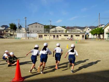 雨で延期になったチャレンジマラソン。今日は,無事に開催です。まずは,3年生。