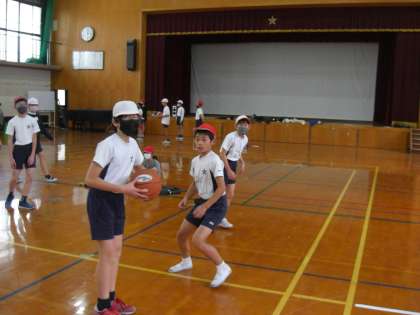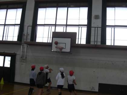 楽しみにしていたバスケットボールの学習が始まりました。攻める時,守る時の作戦をチームで考えながら,ゲームを進めています。昨年度の学習も生かしながら,コートを広く使ってパスを回すことができています。とにかく必死にプレイする6年生ですが,シュートが決まったら,拍手や「ナイス」という声。とても雰囲気のいい体育の学習です。