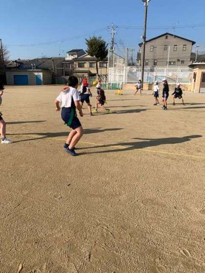 そんな声が聞こえる,タグラグビーの学習を始めています。タグラグビーは,誰もが活躍できるスポーツです。攻めることが得意な子や守ることが得意な子など,自分が自信をもってできることを,見つけていきます。積極的に活動する子ども達の成長が楽しみです。